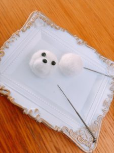 目や鼻に付けるボタンを買ってなかったので、