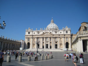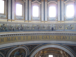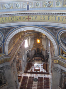 324年に聖ぺテレの墓の上に創建されて、歴代の教皇が葬られていて、ミケランジェロらの設計のもと16世紀から17世紀にかけて再建されて、1626年に完成して、そこに収められている「収蔵美術品」の質と量においては世界でも一目おかれているそうです。(日本語オーディオガイドを借りて入ったのですが、説明を全部聞いてたら、中をまわるのに4時間かかりました!)